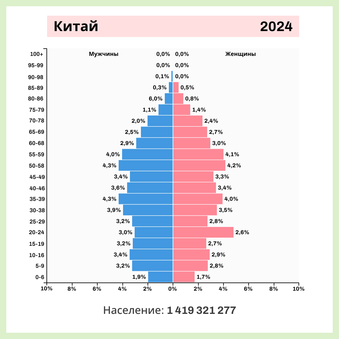 Демографическая пирамида Китая в XXI веке приобрела очертания, характерные для быстро стареющей и убывающей нации.