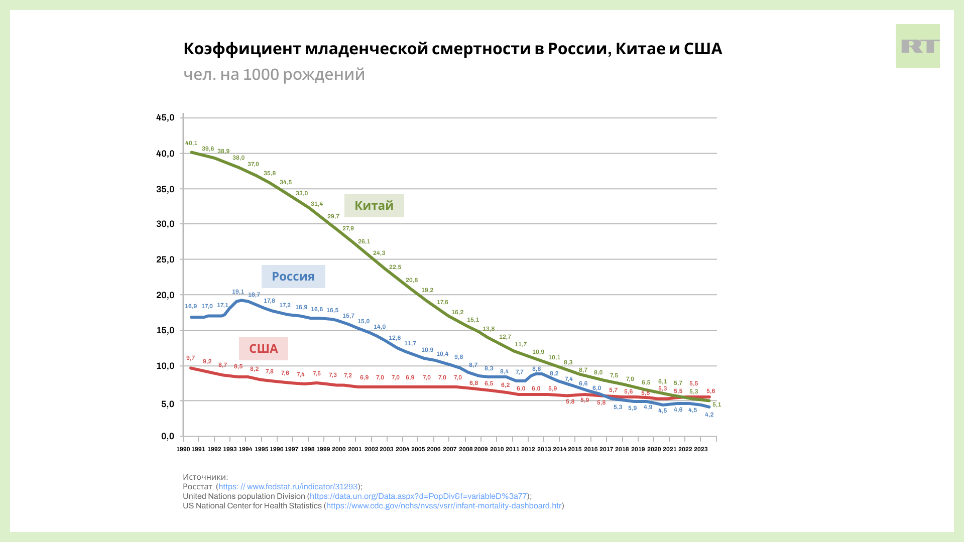 Особенно впечатляюще выглядят усилия и результаты КНР по снижению младенческой смертности. По последним данным, Китай уже обошёл США и по показателю КМС.